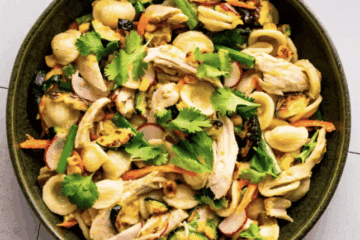 Orecchiette Salad with Roasted Vegetables – For a pasta salad that could serve as a main course, swap some of the pasta for chicken and roasted corn and zucchini. Orecchiette is a great choice because its little cup shapes were