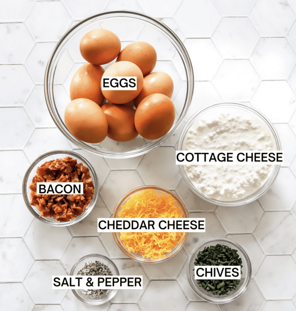 Blending eggs with cottage cheese and shredded cheese, dividing the mixture among muffin cups and baking in a water bath result in a soft, delicate texture.
