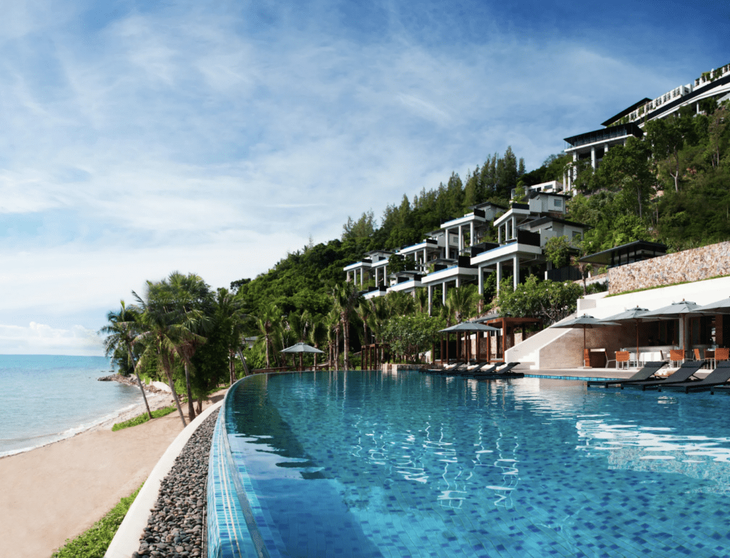The property itself is staggered across a hillside on the island’s southwestern tip, where villas fit with 33-foot infinity pools, private terraces, and spa bathrooms open up to 360 degree views of the Gulf of Thailand.